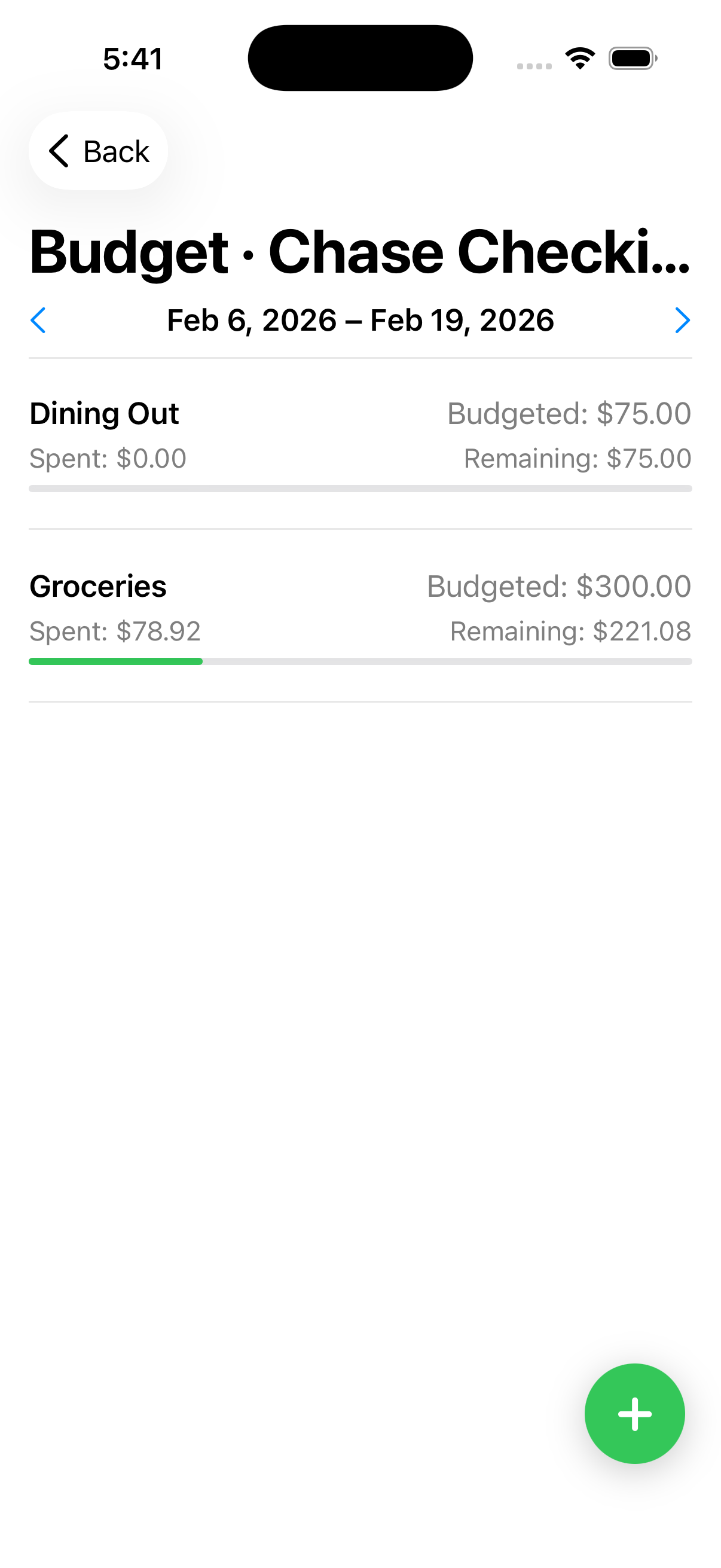 Plan spending around your actual paycheck cadence. See remaining budget in real time.